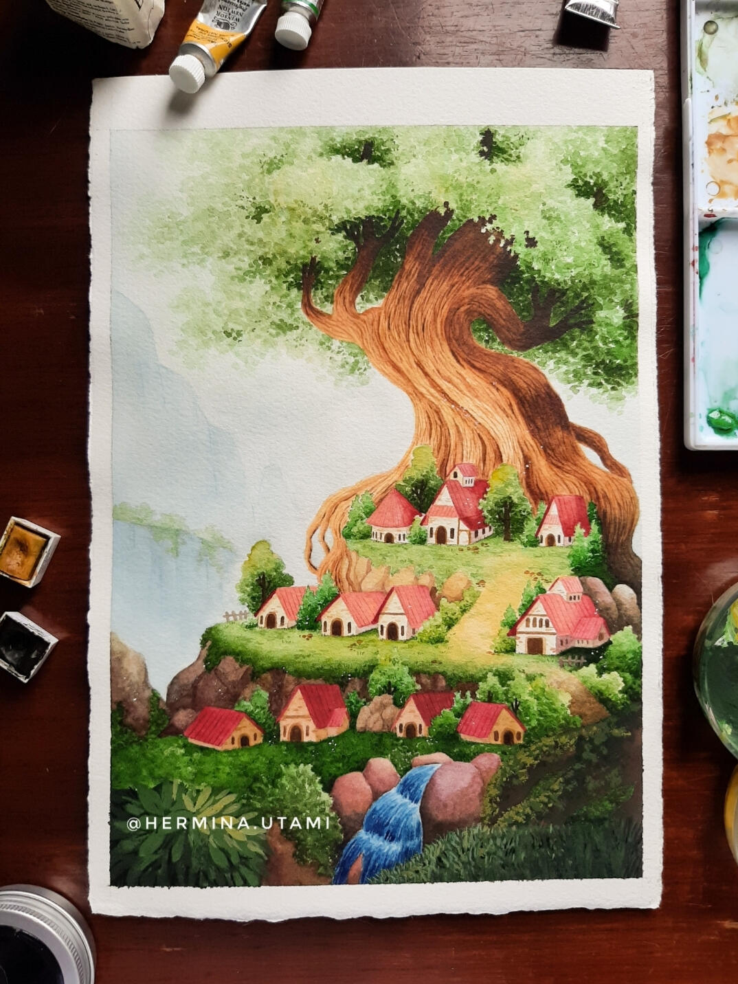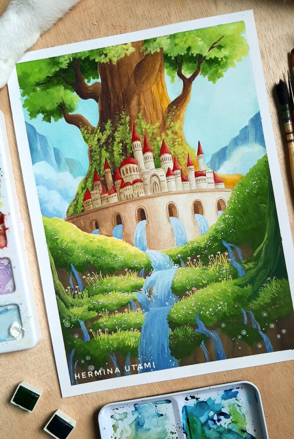 Hi, I’m Hermina Utami, an artist based in Jakarta, Indonesia. I specialize in creating magical and dreamy fantasy landscapes, where nature and imagination blend seamlessly.Inspired by the beauty of nature, classic architecture, and the enchanting worlds of fantasy, I bring ethereal landscapes to life using gouache, watercolor, and other traditional media.Thank you for visiting my website and exploring my art. Your support truly means a lot to me.~ Hermina Utami ~